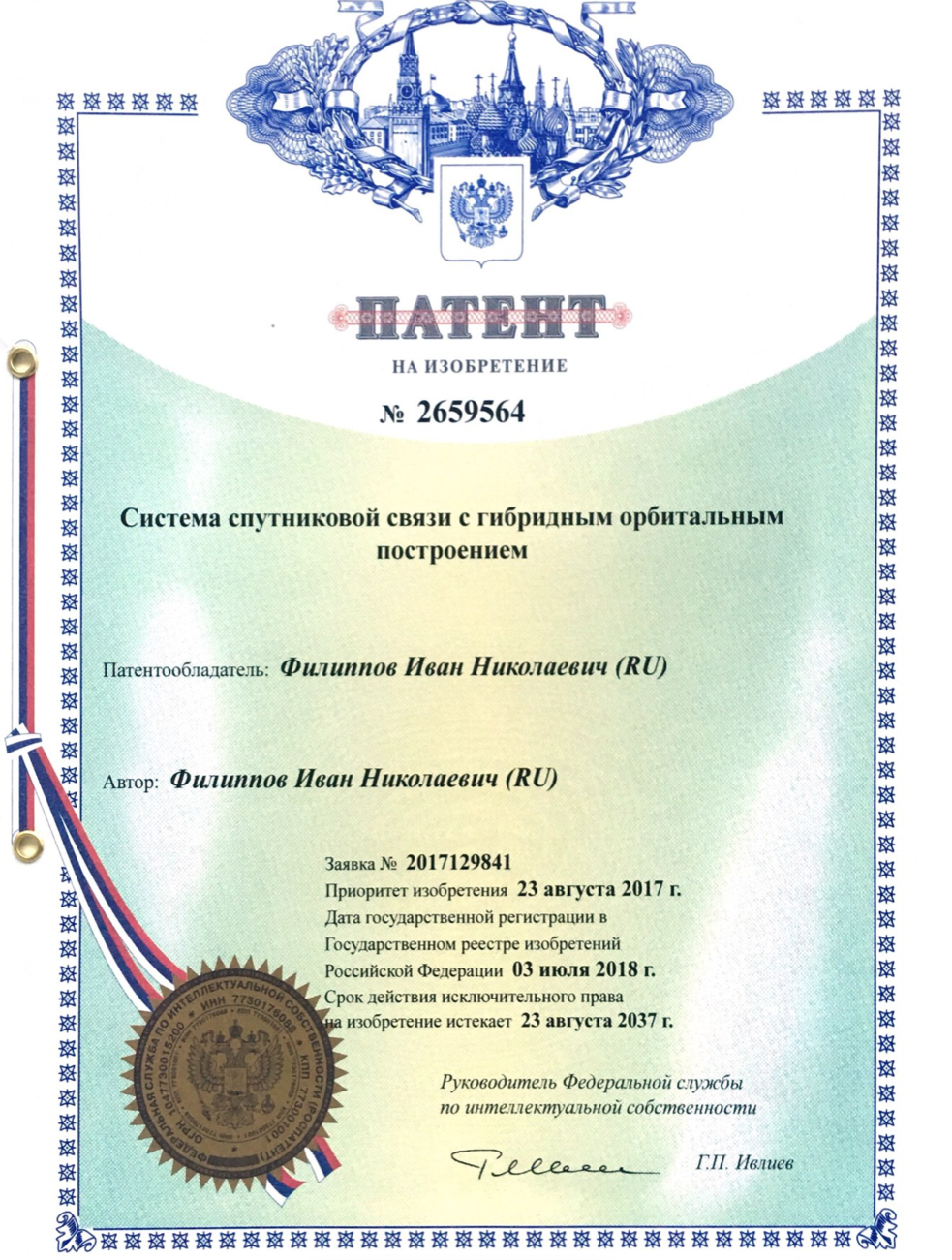 Проект глобальной системы спутниковой связи, включающей высокоширотные регионы Арктики и Антарктики. Патент Орбитальной Лаборатории №2659564.